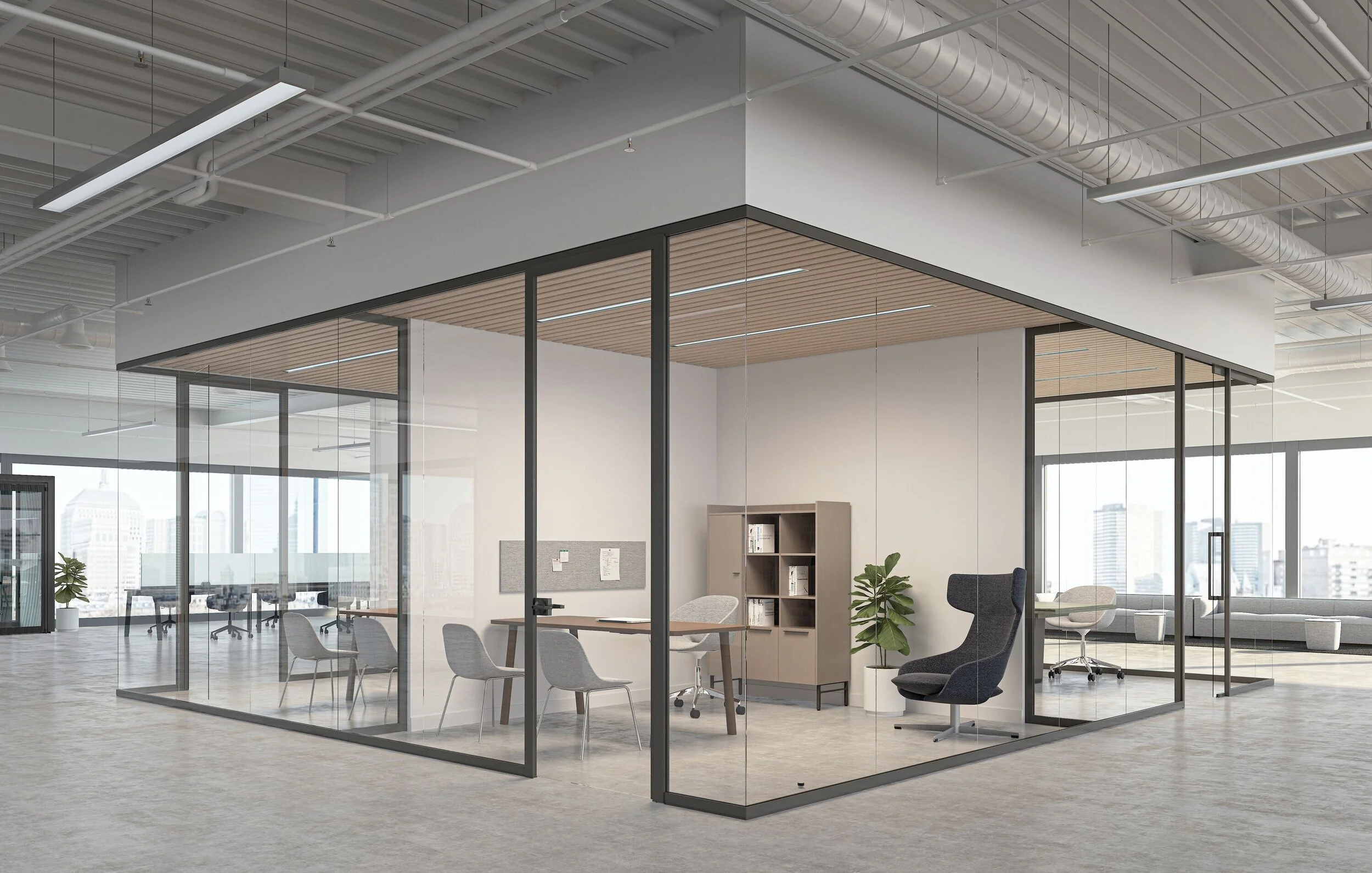 Tek Vue™ is a glass office-front system that responds to the essential needs of today’s workplace. The system focuses on single-center glazing and thin-profile frames, while providing effortless integration with conventional construction and existing Teknion wall programs.