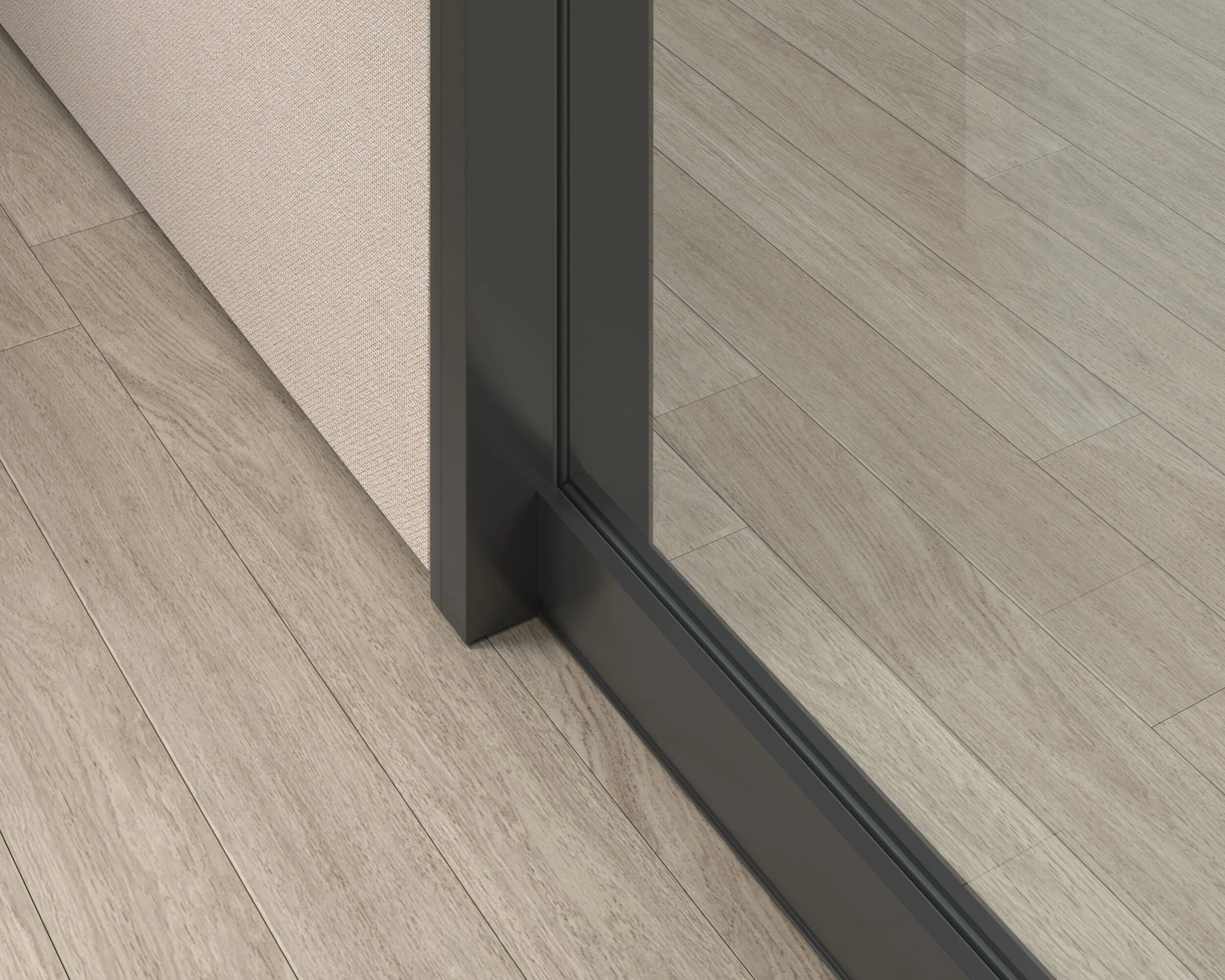Universal Platform: Tek Vue framing elements are universal in nature to streamline on-site staging and accelerate installation procedures. Pivot and barn door frames are not specific to individual door leafs, hardware or ceiling heights, thereby allowing easy placement anywhere on the floorplan. All wall and door framing elements are cut on site from common lengths, allowing flexibility with any on-site discrepancies.